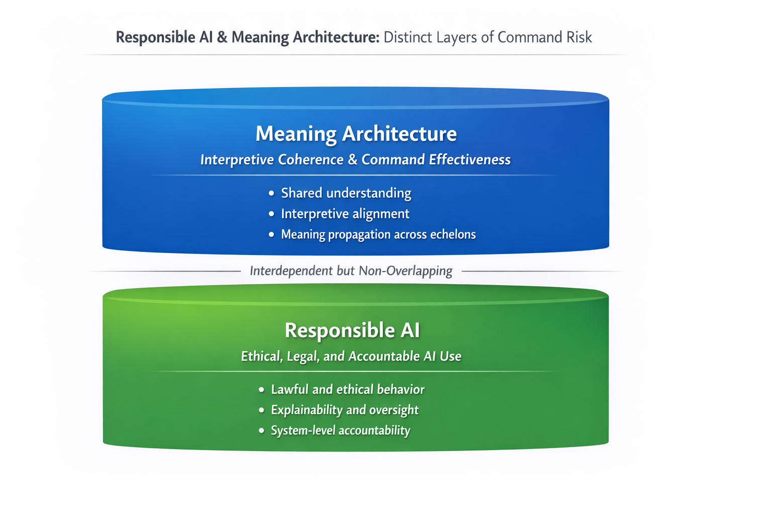This short memo clarifies how these two approaches operate at distinct but complementary layers of command risk. Even when AI systems are compliant and functioning as designed, interpretive dynamics can quietly fracture shared understanding, displace human judgment, and degrade command effectiveness.