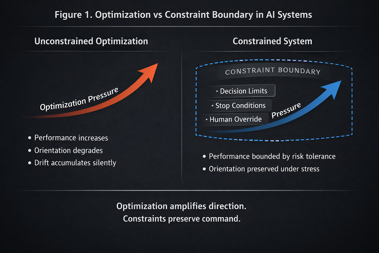 The paper and Figure 1 below outline why constraints are not safeguards or compliance artifacts, but control surfaces - and why mature AI systems optimize for maximum tolerable risk, not maximum performance.